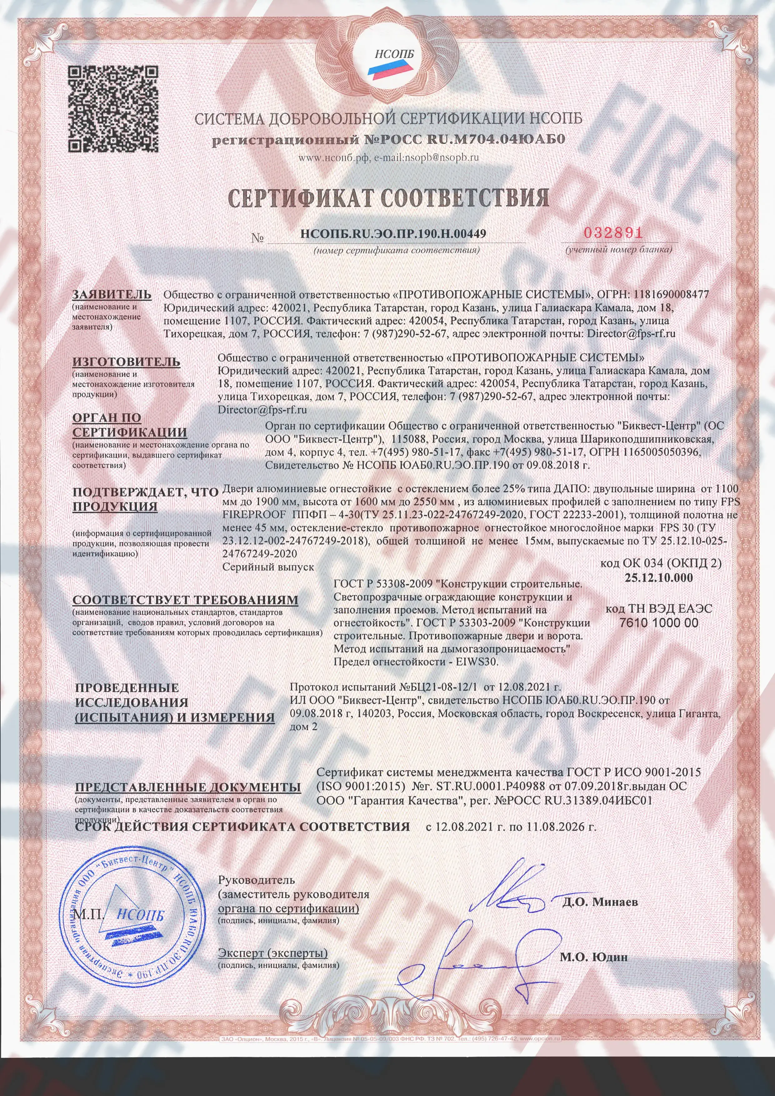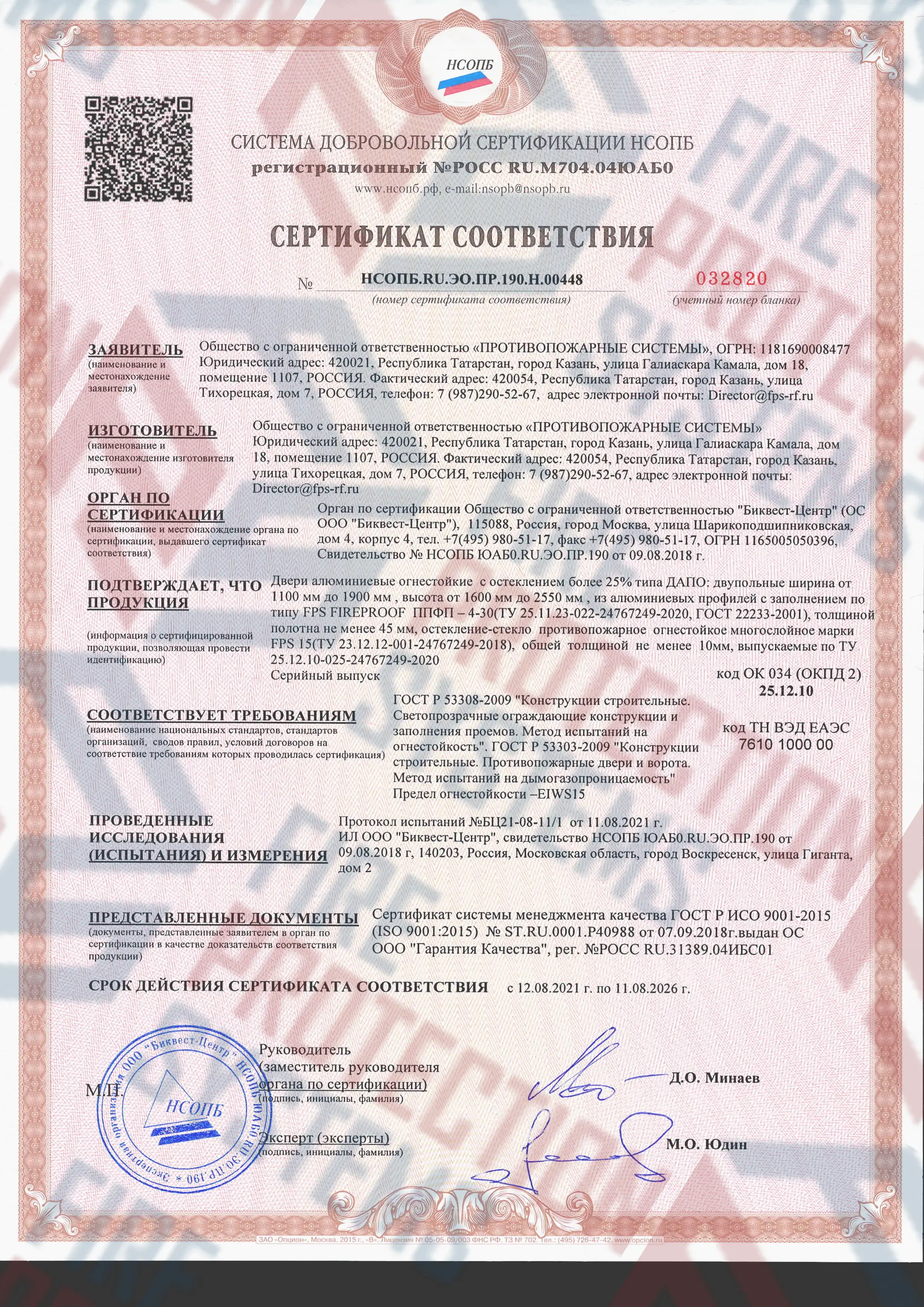 Противопожарные алюминиевые двери в Долгопрудном от завода-производителя «Fire Protection Systems». Мы предлагаем глухие алюминиевые и светопрозрачные противопожарные двери любых размеров. В нашем каталоге представлены противопожарные двери от EIW15 до EIW 60 с тёплым и холодным профилем. Наши товары сертифицированы и полностью соответствуют ГОСТ. Также мы предлагаем доставку по всей России и установку противопожарных дверей из алюминиевого профиля на объекте. Закажите консультацию специалиста «Fire Protection Systems», чтобы узнать, как купить противопожарные двери остекленные алюминиевые по лучшей цене.